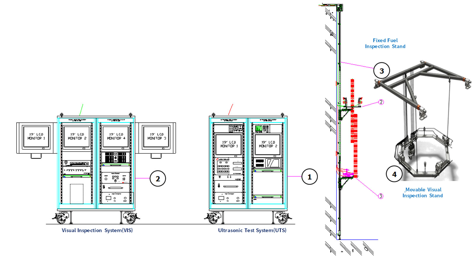Fuel Inspection System(FIS) is used to inspect the mechanical defects of the spent fuel rods.