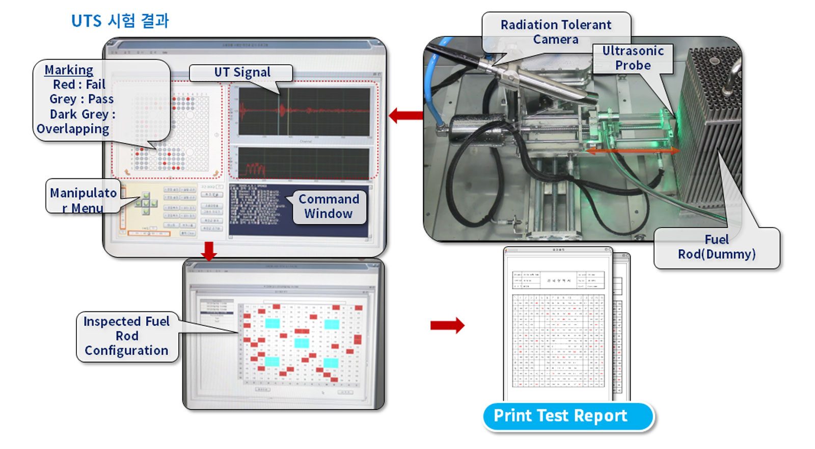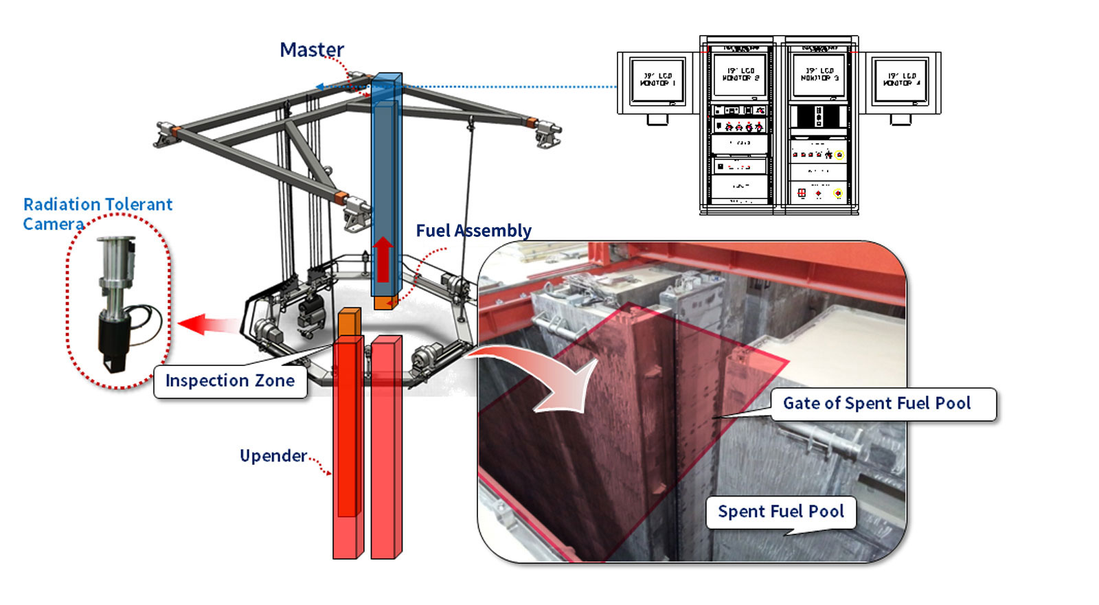 핵연료검사장비는 원자력발전소의 사용후핵연료 저장조에서 사용후 연료봉의 기계적 결함을 검사하는데 사용